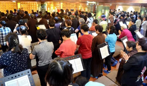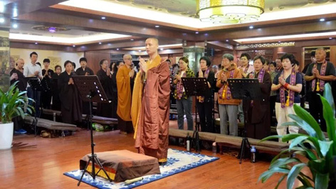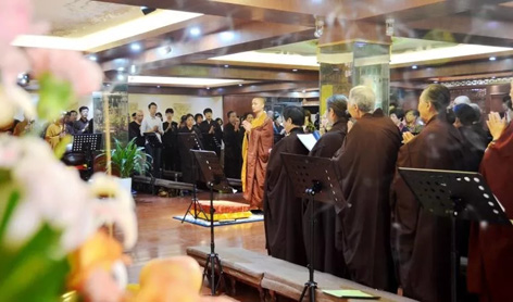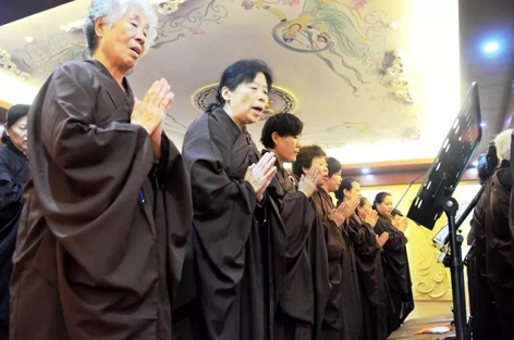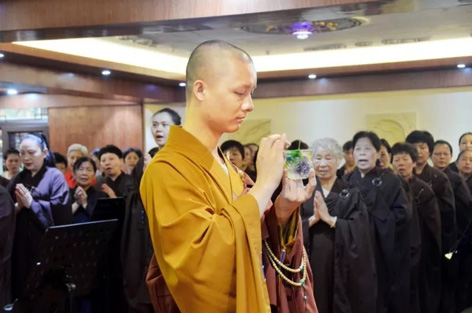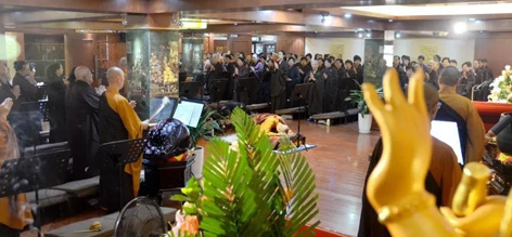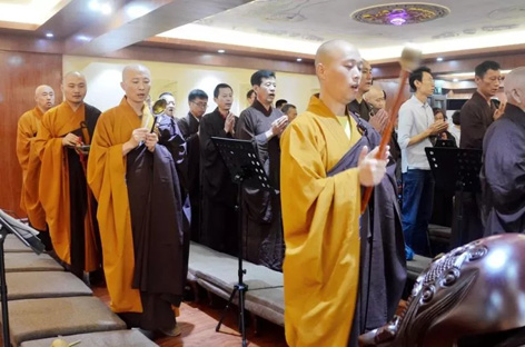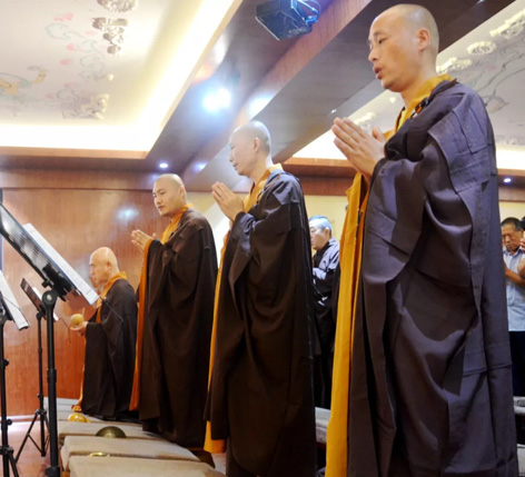 崇明寺“未来千佛佛名宝忏”法会第一日 2019-10-01 阅读量:403 佛事法会 2019年10月1日,崇明寺未来千佛佛名宝忏法会第一日。上午9时,两序大众齐聚法堂,主法法师洒净,清净坛场。大众勤行精进,至诚忏悔。念佛一声,福增无量;礼佛一拜,罪灭河沙。