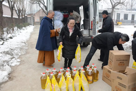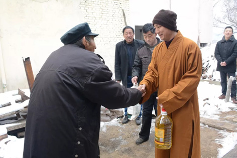 2020年1月17日,腊月二十三,正值农历小年,“温暖泉城”——兴国慈善功德会爱心慰问西营镇坔窝村。受兴国禅寺方丈弘庵大和尚委托,兴国禅寺果达法师、兴国慈善功德会秘书长妙行居士,带领功德会部分会员及义工,为西营镇坔窝村贫困户送去米、面、油、棉被等生活必需品及慰问金,以及兴国慈善功德会、社会各界的关怀和新年祝福。