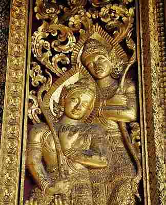 和万象城相比,琅勃拉邦城还有许多雕刻美术品和木刻工艺保存下来,可能因为琅勃拉邦城一直有国王相嗣统治,工匠流派代代相传,而万象城在遭到拉玛三世王时代泰国军队的破坏后,有一段时间荒芜空白,结果使艺术事业十分可惜地消失,工匠流派失传,直至老挝脱离法国统治获得独立以后才恢复。