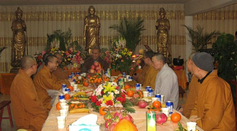 茶话会上,无碍法师、果达法师、法如法师等与会法师献上唱诵,刘坤等居士献歌祝贺。整场晚会,法喜充满,温馨和谐,功德圆满。