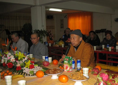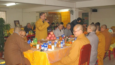 弘庵法师回顾一年来的崇明寺各项发展建设情况,至恢复开放后,全寺僧团和居士信众同心同德,在复杂艰难的环境下,克服外界因素,为崇明寺道场护持、宗教活动的顺利开展尽心尽力,他给予高度的赞扬和由衷的感谢,他表示:“崇明寺的建设发展还任重道远,齐心协力地承担如来家业,古刹重辉,大法复建”,同时向与会的诸山长老、信众居士表达新年问候。