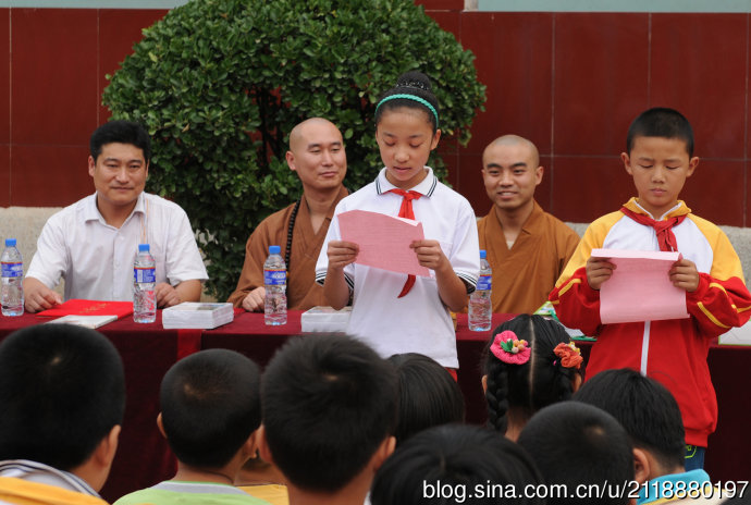 玉龙校长发自肺腑的致辞道:“欢迎兴国禅寺-崇明寺的法师,领导及义工的作客,感谢社会各界人士捐赠的图书及爱心关怀,此善举是对社会正能量最好的诠释,送来的不止是书,是更多的爱心和期待,希望孩子们发奋学习,回报社会,真诚的祝福每位爱心人士身体健康,阖家幸福。