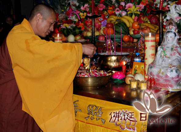 2011年庆祝南无本师释迦牟尼佛圣诞法会 1905-06-18 阅读量:372 佛事法会 今日,四月初八,本师释迦牟尼佛的诞日。夏雨阵阵,滋润苍生。 兴国禅寺如期举行盛大的浴佛节,虽然雨一直下着,但是根本没有改变信众们上山顶礼佛陀的信念。读诵佛陀传记,宣扬佛陀功德,让更多人认识真正的佛陀,以佛为导师,学习佛的为人处世修为,积德弘福。 南无本师释迦牟尼佛。