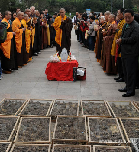 今日,千佛山兴国禅寺例行放生法会。凉凉秋意,巍巍千佛,早八点半千佛山南大门广场上佛音绕梁,滋润心土。