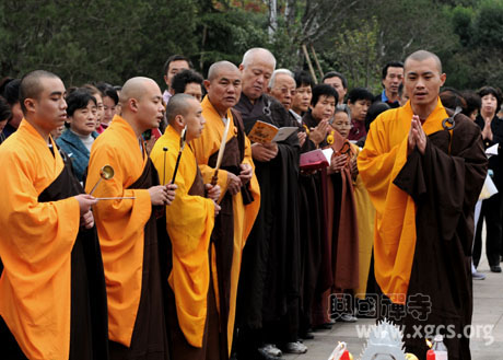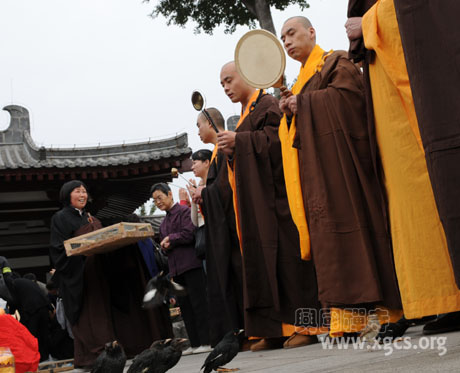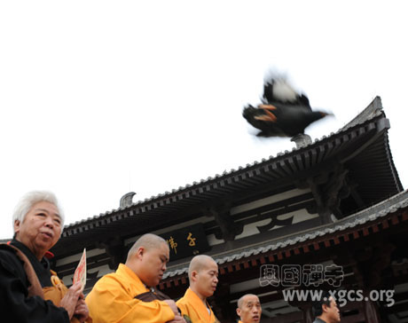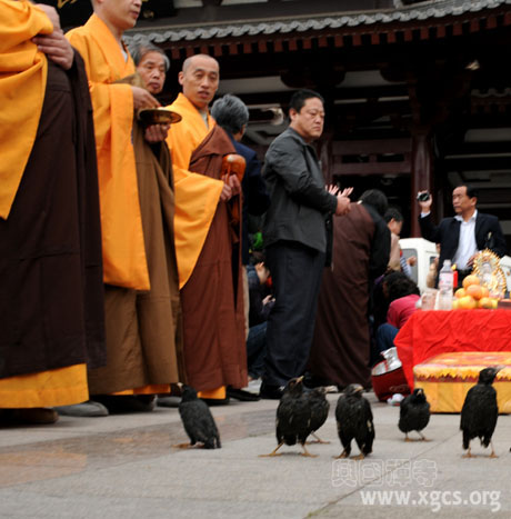 聆听佛号,沐浴佛恩,鸟儿在慈悲自在的两序僧众梵音中,久不离去,愿已次次徘徊感恩当世救渎,愿顿顿停留奉谢来世续缘。南无大慈大悲观世音菩萨。愿菩萨普度众生,度一切苦厄。弟子们虔诚祈祷,求佛施无边无际,众生安康极乐。