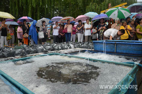 践行佛陀慈悲心——壬辰年六月十七放生 1905-06-22 阅读量:355 佛事法会 喜雨济南,台风过境。周六泉城,漫雨冲天。 早7点半,为喜迎大慈大悲救苦救难观世音菩萨成道纪念,兴国禅寺组织例行放生,近300多人居士信众冒雨参加放生,让烟雾绵绵的锦云川乐园温暖万千。放生护生,为众生求解脱,行愿佛祖慈悲,佛心动力,心念菩提。 南无大慈大悲观音菩萨!今日放生,一道风景赏心悦目,法喜满怀。为近日来遭强降雨导致特大自然灾害的罹难者祈福,愿菩萨普度众生,度一切苦厄,求佛施无边无际,众生安康极乐。