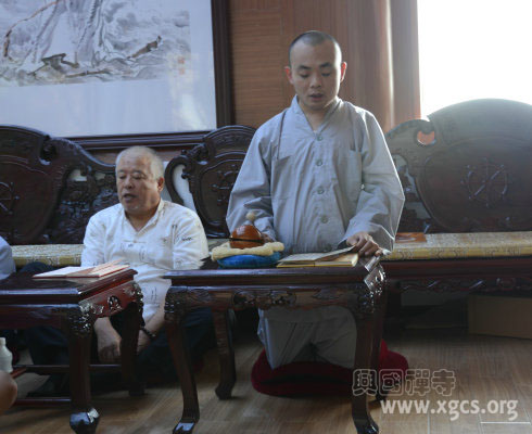 今因上弘下庵法师公务外出,另由兴国禅寺惟作法师和法传法师带领大众诵经弘法利生,将此诵经功德回向法界一切有情,诵经功德殊胜行,无边胜福皆回向,普愿沈溺诸众生,速往无量光佛刹。