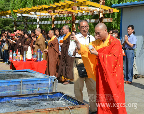 千佛山兴国禅寺为庆祝南无本师释迦牟尼佛诞辰纪念,今日举行放生活动。此次放生法会由兴国禅寺住持弘庵法师主法。护法居士、两序大众近百人参加,殊胜圆满,佛佑吉祥。