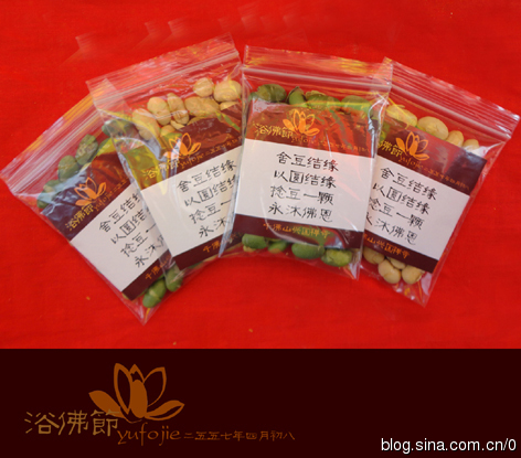 何谓“舍豆结缘”?因佛祖认为人与人之间的相识是前世就已结下缘分,俗语就有“有缘千里来相会”之说。又因黄豆是圆的,圆与缘谐音所以以圆结缘。浴佛日就成了舍豆食豆日。这个习俗起于元代,最盛于清代。