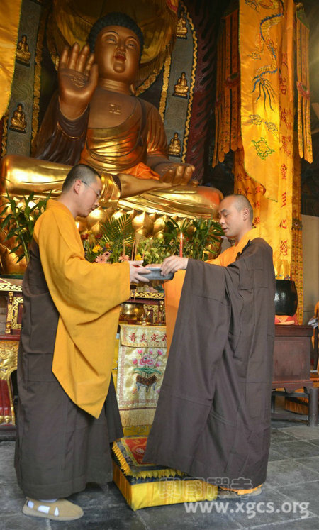 上午9时,兴国禅寺僧众齐聚大雄宝殿。大众至诚礼佛三拜后,安居受筹仪式正式开始。住持弘庵法师拈香主法,感谢诸佛菩萨的拥护。然后,由住持弘庵法师开示,今差悦众法传法师行筹,悦众圣缘法师收筹。大众师依次受筹、拈香传炉、诵咒发愿、次第说偈。