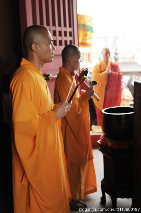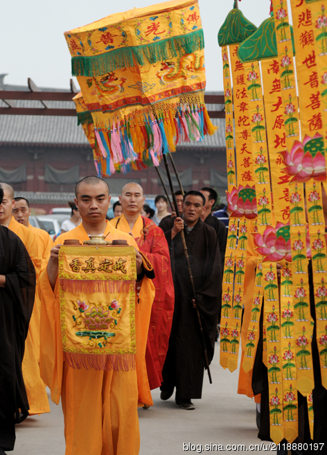 上午,大觉寺内佛旗招展、信众云集、经幢高悬,梵音声声。