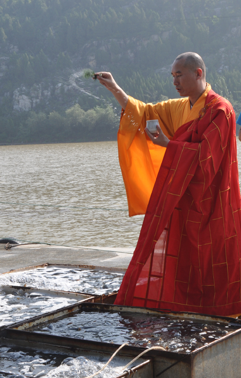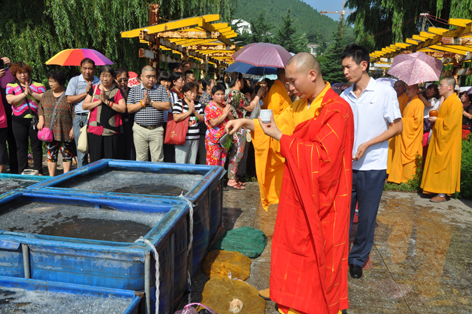 “同生今世亦前缘,放生池畔忆前衍。”放生活动体现了佛门广大慈悲的救度精神。人既爱其寿,生物爱其命。放生观音慈,放生普贤行。观音菩萨大慈大悲,普救人间疾苦。僧俗大众齐发慈悲心,救护生灵脱离灾厄苦。