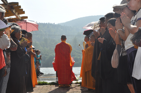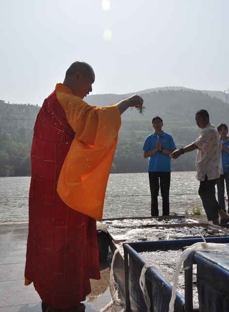 兴国禅寺为庆祝南无观世音菩萨成道日,组织放生活动。清早7:30,居士信众约200余人在我寺住持上弘下庵法师带领下,乘车前往锦云川水库,心怀菩提心,践行菩萨道。