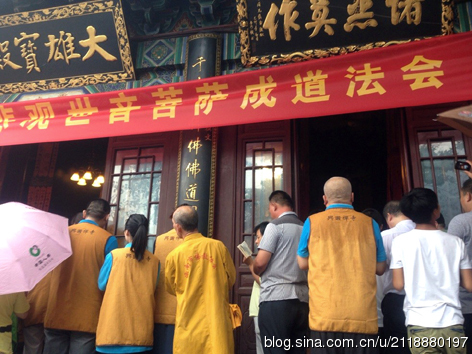 庆祝观世音菩萨成道日纪念法会 1905-06-02 阅读量:370 佛事法会 观音菩萨妙庄严,三十二应济群生。无缘大慈,同体大悲。2013年农历六月十九日,兴国禅寺隆重举行庆祝观世音菩萨成道纪念日法会,今日天空普降甘霖,信众云集,秩序井然,庙宇庄严,梵呗声声,虔诚礼佛。 法会由我寺知客惟作法师主法。祈国家昌盛,社会祥和,化灾消戾,众生安乐。本次法会兴国禅寺青年义工团利用网络弘法途径,同步图片文字直播法会盛况,更多信众通过网络道场共沾法喜。 瓶中甘露常遍洒,手内杨枝不计秋;千处祈求千处应,苦海常作渡人舟。 南无大慈大悲观世音菩萨! 撰稿 妙 信 图片 妙 强 青年义工团文宣组