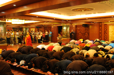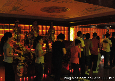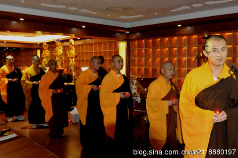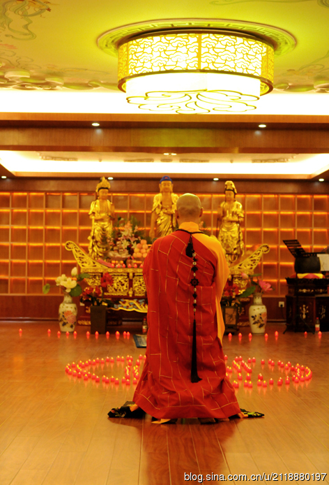 兴国禅寺·崇明寺举行癸巳年中秋拜月供灯祈福法会 2013-09-18 阅读量:337 佛事法会 2013年9月18日,农历八月十四,崇明寺举行拜月供灯祈福法会。 民间自古便有八月十五中秋拜月的习俗。佛教中八月十五日为月光菩萨的圣诞日。月光菩萨是药师如来的胁侍,又作月净菩萨、月光遍照菩萨。迁变众生苦厄,使为利益安乐者。 供灯法会由兴国禅寺及崇明寺住持弘庵法师主法,愿月光菩萨加持,祈信众身心安泰,业消智朗、众苦解脱,正法久住,破障断惑,早证佛果。 两序大众明灯点点,虔诚绕念南无本师释迦牟尼佛。为世之灯明,乃人间最胜之福田。一灯能破千年暗,一智能解万世愚。我们共同点燃内心的“自性明灯”,通向智慧、光明的彼岸!