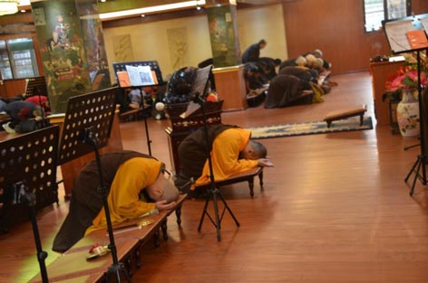 崇明寺隆重举行大悲忏法会 2013-10-18 阅读量:358 佛事法会 为庆祝观音菩萨出家日,2013年10月16日-18日,兴国禅寺于崇明寺启建大悲忏法会。本次法会会期三日,由兴国禅寺及崇明寺住持弘庵法师主法,俾仗菩萨愿力、祈祷世界和平,国泰民安,祈檀越善人阖家美满,身心健康,福慧增长,速证菩提。 信众怀慈悲恭敬之心云集崇明寺,虔诚礼拜《千手千眼大悲心大陀罗尼忏法》,绕念观世音菩萨圣号,外离身垢,内离心染,身心光洁,启发悲智。 兴国禅寺青年义工团团员积极参与法会护持协助,为法会顺利如法进行提供了有力支持。 18日晚举行供灯法会,大悲忏法会殊胜圆满。