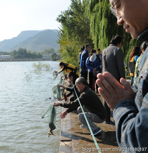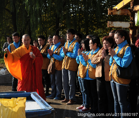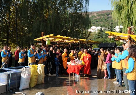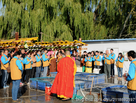 为庆祝观世音菩萨出家日,兴国禅寺于2013年10月20日,农历九月十六日在锦云川水库组织放生法会。