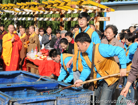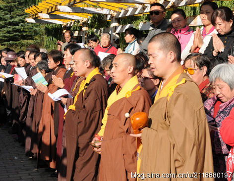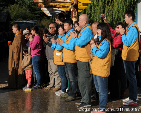 我寺住持弘庵法师主法此次法会,为放生群生授三皈、杨枝洒净,信众满怀慈悲之心,忆念皈敬观世