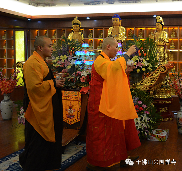 上午8点20分上香,维那起炉香赞,弘庵大和尚拈香起七,杨枝净水遍洒甘露,为大众清净法身。