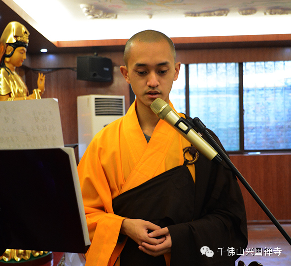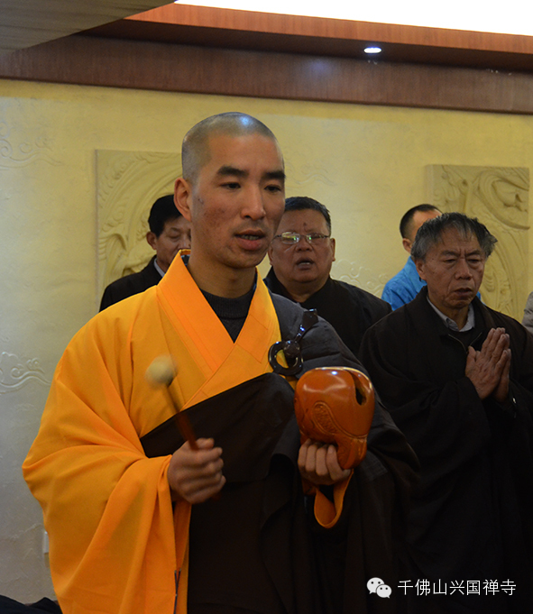 下午1点,炉香赞起,四众弟子再持诵经卷佛偈,并绕佛念诵佛号,归位净心认真听从方丈弘庵大和尚开示,伽蓝僧团为众生回向祈福。