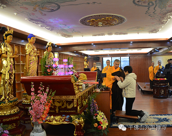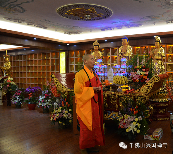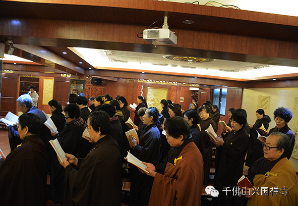 下午1时整,打板声起四众弟子云集法堂内诵读经卷念佛绕佛,做出功德回向,回向一切众生速往极乐净土。