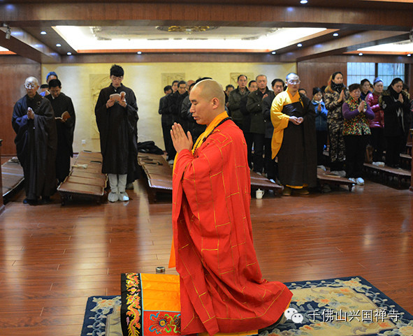 2015年1月14日千佛山兴国禅寺·崇明寺举行首届冬季佛七法会圆满结束,今日,方丈弘庵大和尚亲临道场,为八方净友解七。