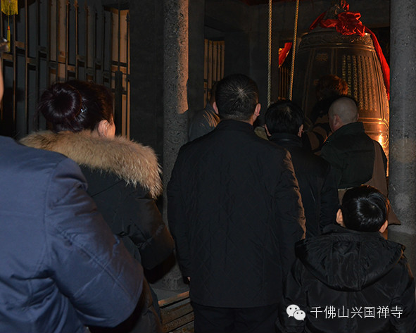崇明寺内善信云集凌晨敲钟祈福迎新春。寺院圆满复建,庄严清净,除夕凌晨零点钟鼓齐鸣,福音千里,十方善信络绎不绝,安全有序的参加敲钟祈福,诚挚于心,愿望达成。